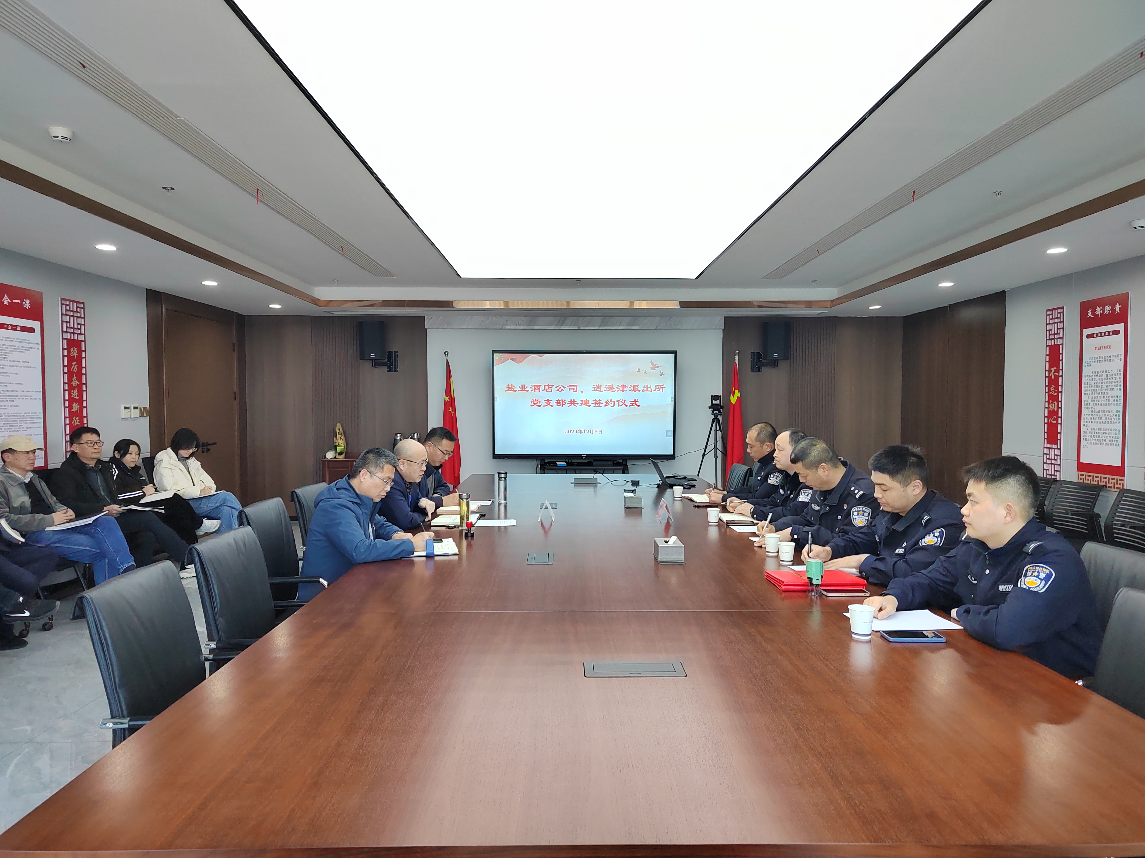 12月5日下午,酒店公司黨支部與逍遙津派出所黨支部聯(lián)合開展了黨建共建活動(dòng),酒店公司全體黨員、逍遙津派出所黨員民警共20余人參加。